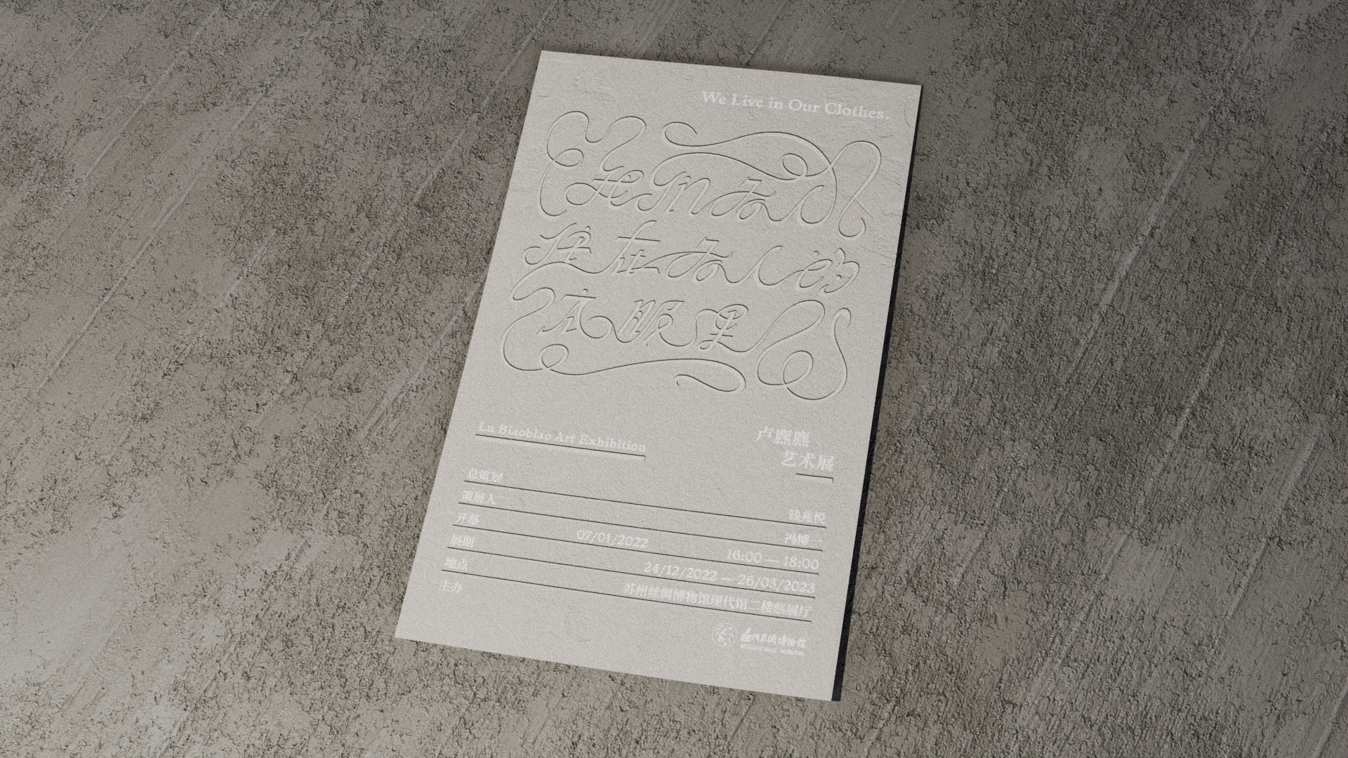 The exhibition visual I designed for “We Live in Our Clothes” at the Suzhou Silk Museum, along with the cover design for the artist’s book. This solo exhibition showcased the artist’s contemporary textile and fiber art.