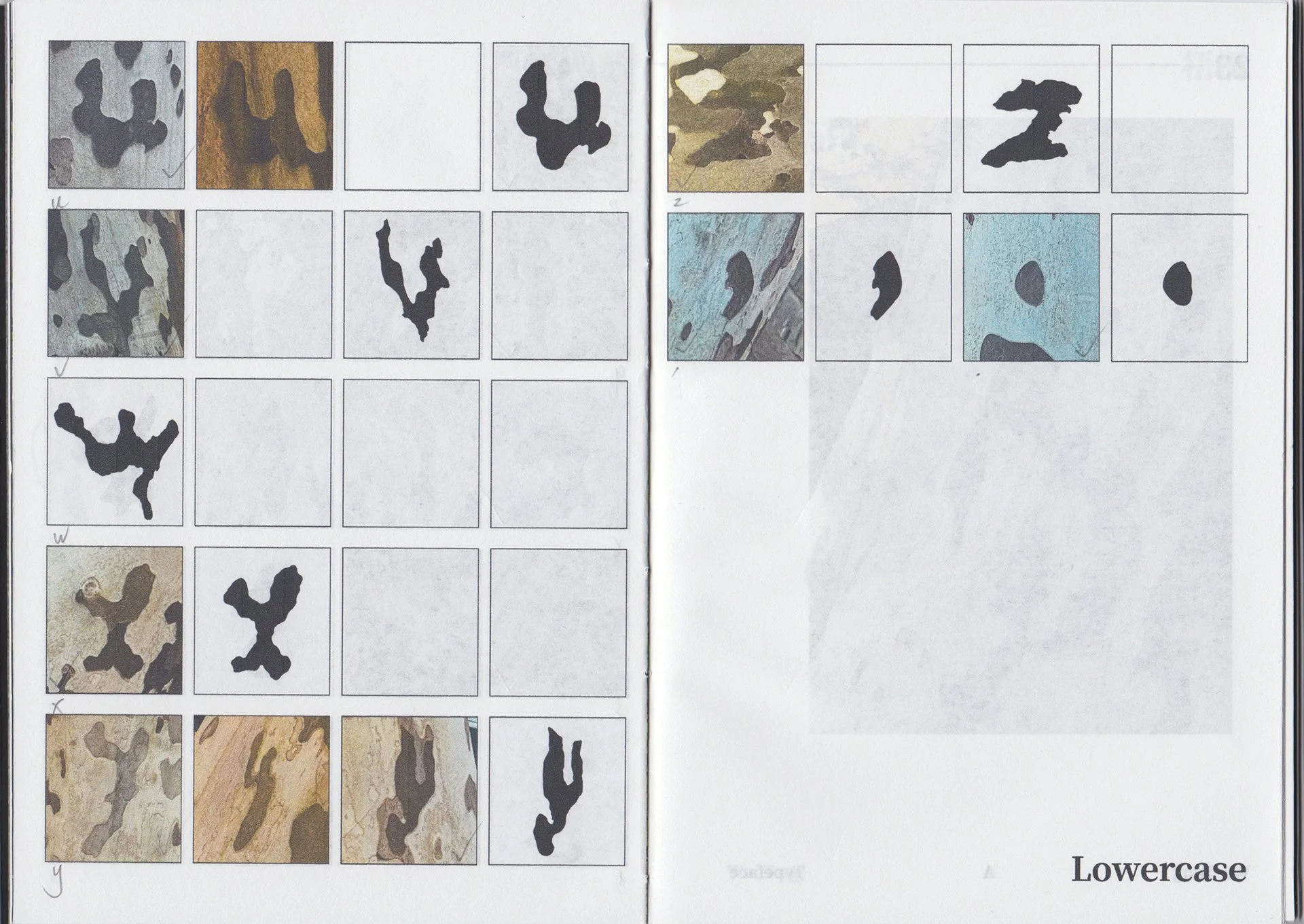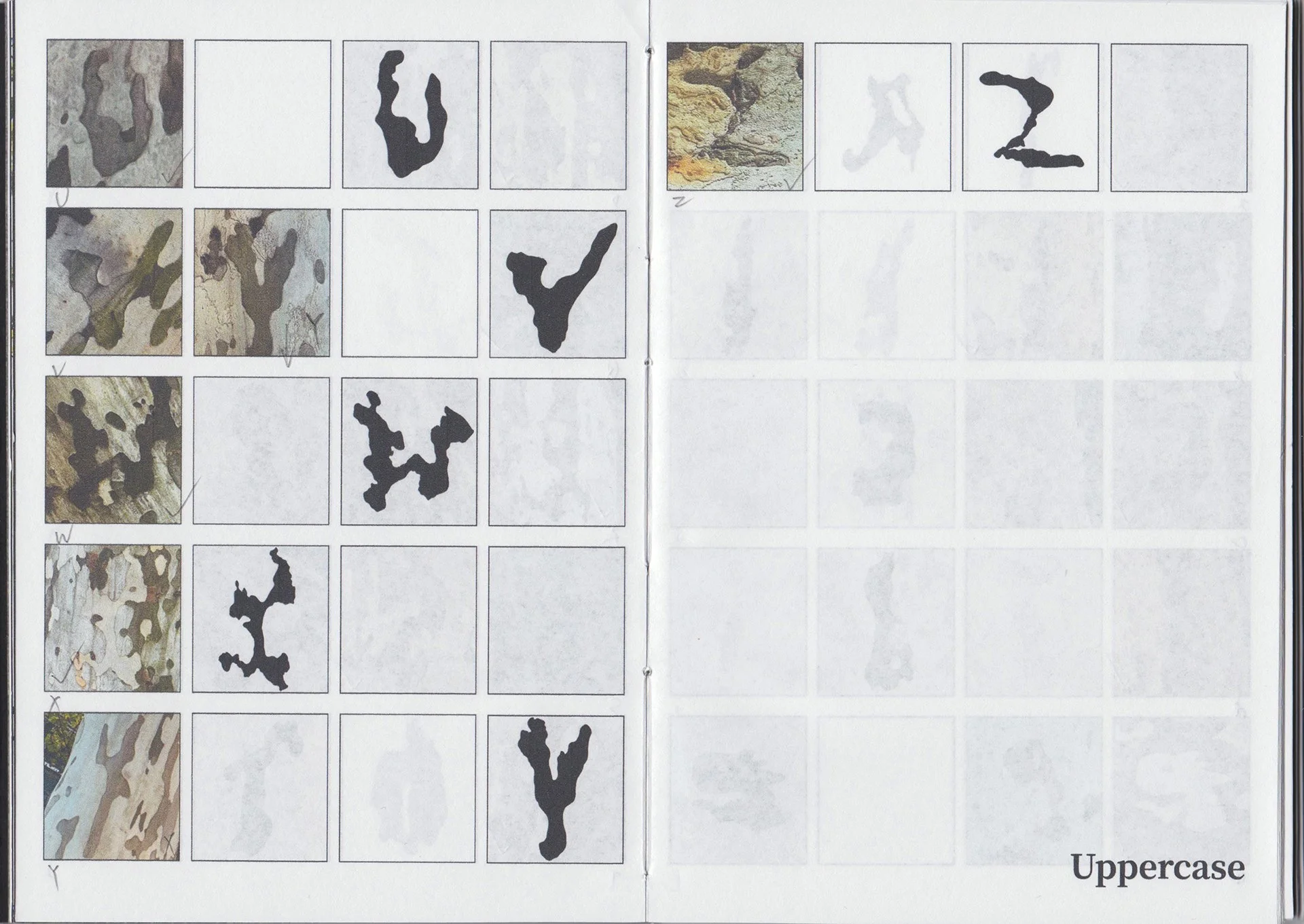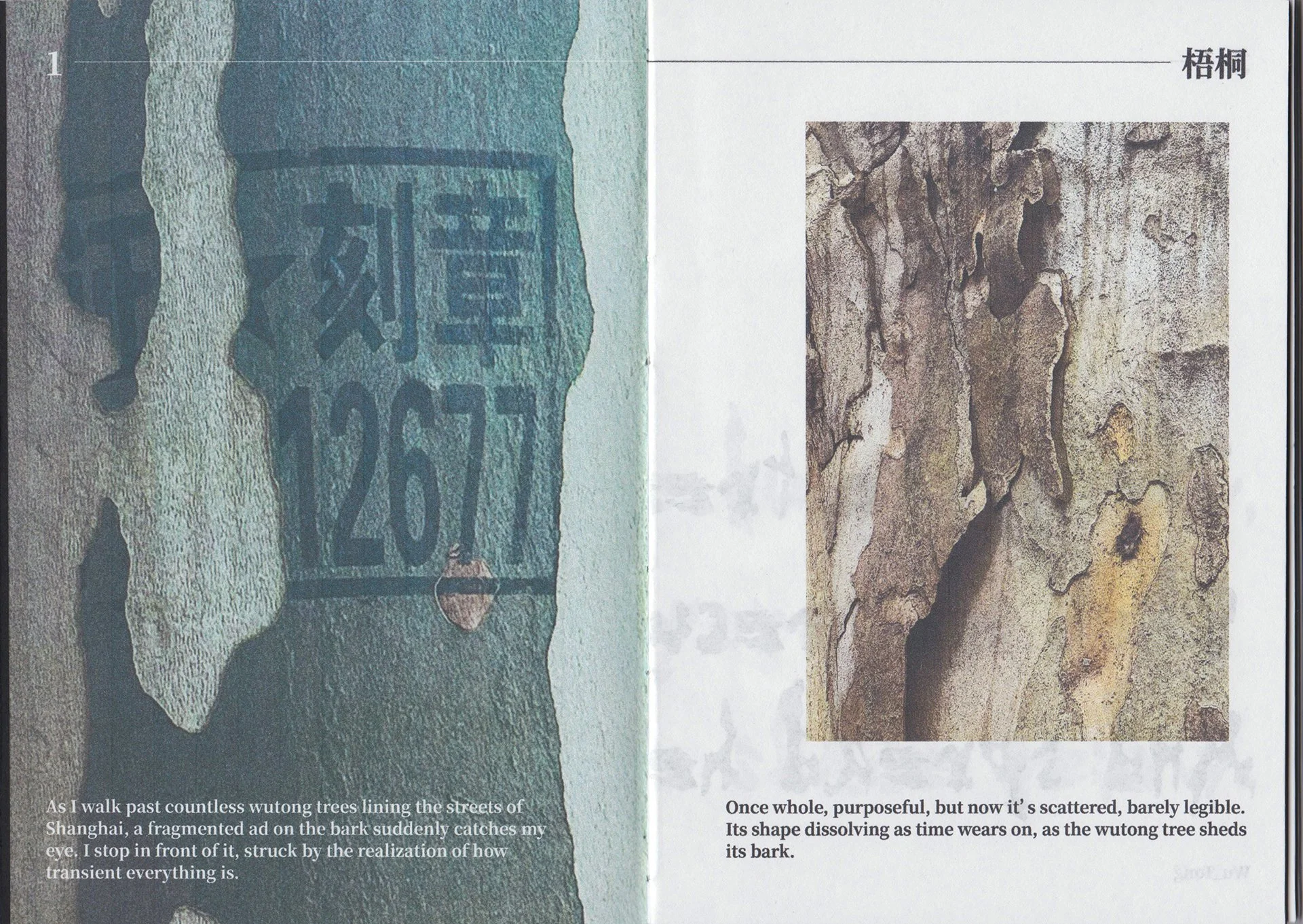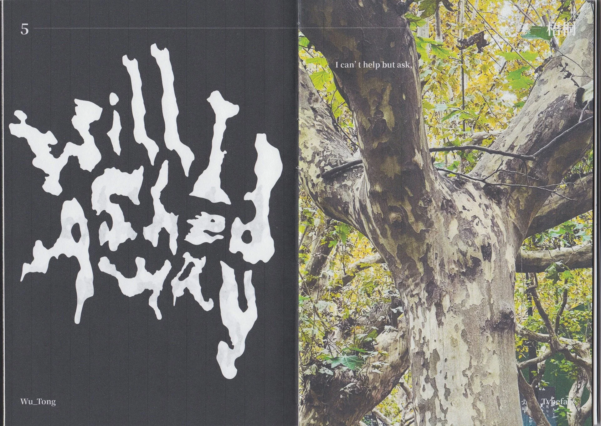 “Wu Tong” is a typeface I designed based on the organic shapes found on plane trees which formed themselves by the shedding of bark. This project started when I was walking in the street of Shanghai and seeing an ad. It sparked my realization of the transient nature of life and inspired me to capture a font that embodies this fragmented aesthetic, conveying the delicate balance between growth and decay, much like the ever-changing surface of the tree’s bark.